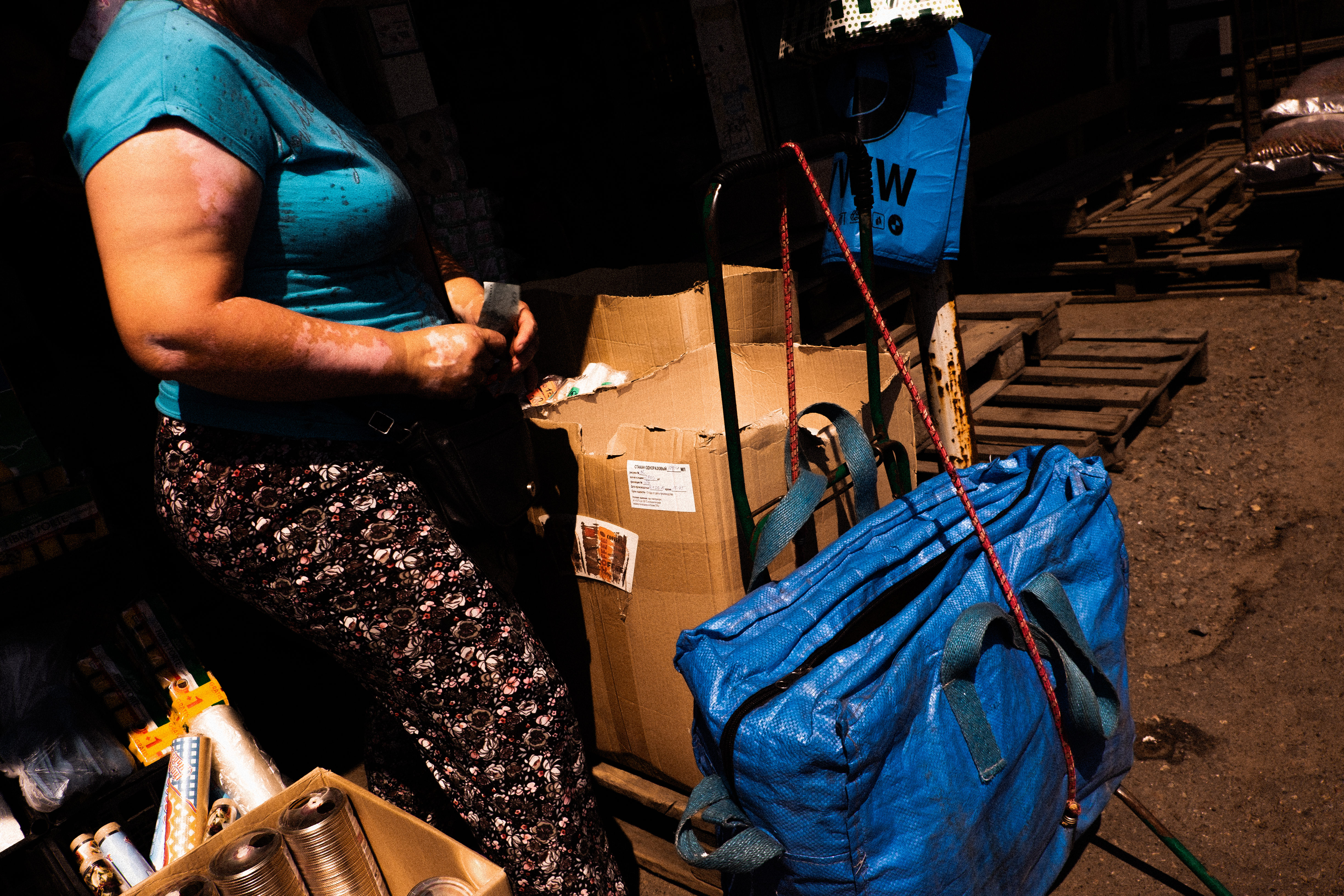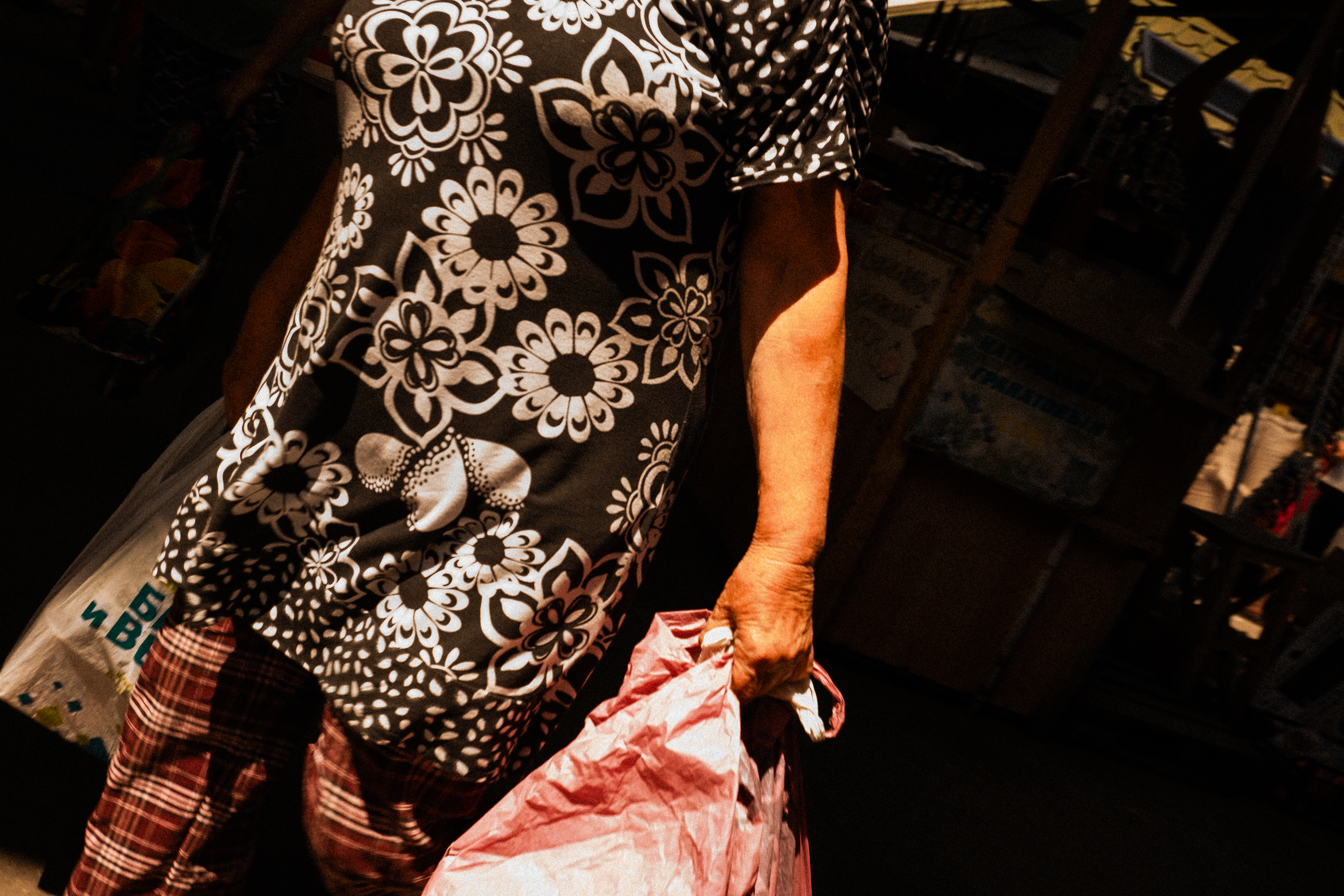 I left Odesa for another country when I was sixteen. The first photographs for Meat, Fish and Aubergine Caviar were taken in 2016, when my father fell ill and was admitted to the ICU. That event made me stay in Odesa for several months, caring for him and entertaining my forlorn, terrified mother by photographing her. I continued the project until 2019, returning to Odesa several times a year until my father had fully recovered and could resume his routines: exercising on the beach, shopping at local open-air markets, and indulging in cooking and eating with my mother.