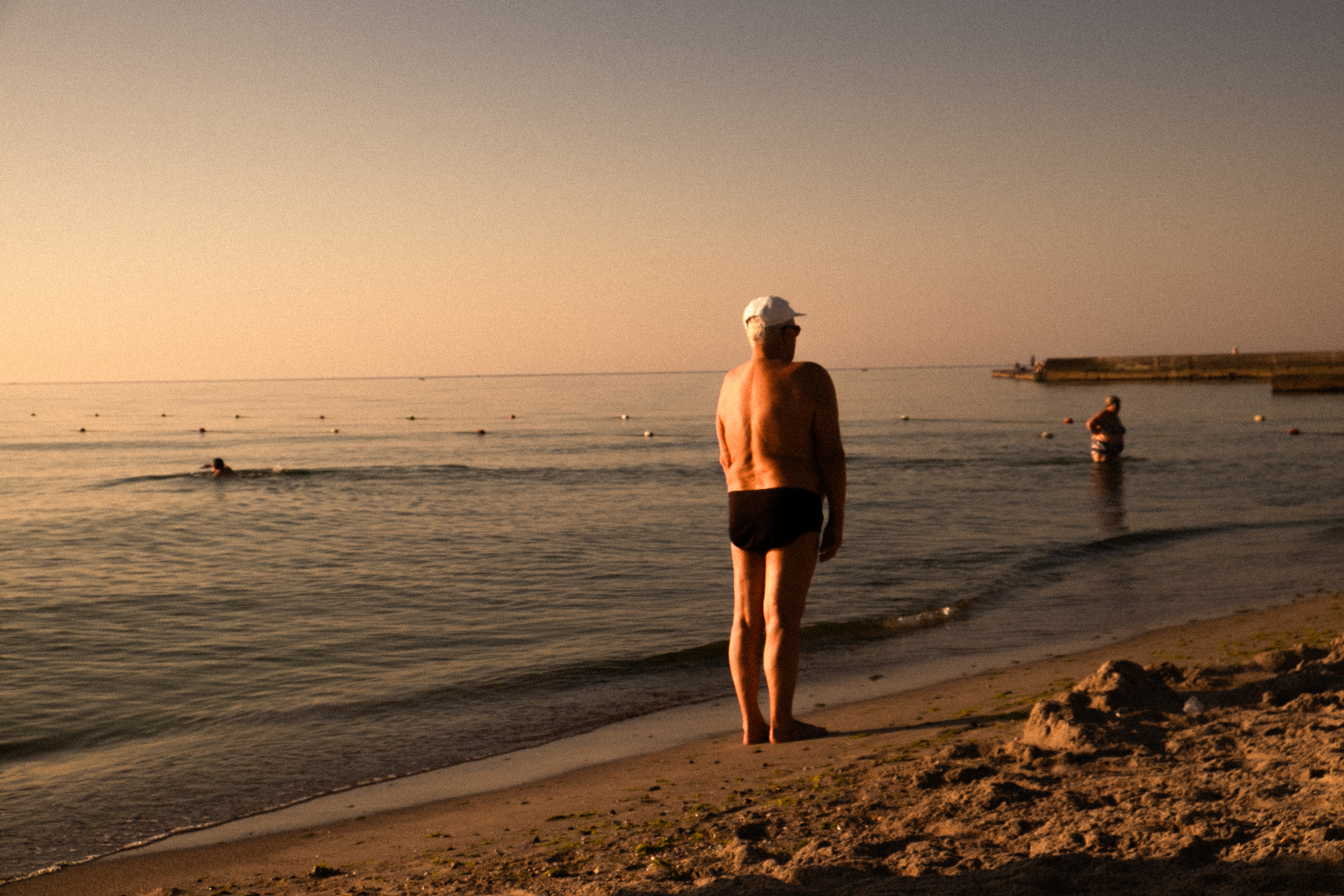 Meat, Fish and Aubergine Caviar is a project about my parents’ life in Odesa, Ukraine, a city on the Black Sea coast that has traditionally had everything in abundance: fish, sun, exposed flesh, and of course… delicious aubergine caviar. It is a city where the real overlaps with the surreal, and where everyone seems born to shine, either in the bright rays of its beautiful sandy beaches or under the charming street lamps of Prymorsky Boulevard, right where you can find the famous Sergei Eisenstein staircase from his 1925 silent film Battleship Potemkin. It is a city where you stroll leisurely along the shore in your white trousers because “it’s almost Rio de Janeiro,” as claimed by the protagonist of The Twelve Chairs (1928), the classic satirical novel by Odesan authors Ilf and Petrov.
